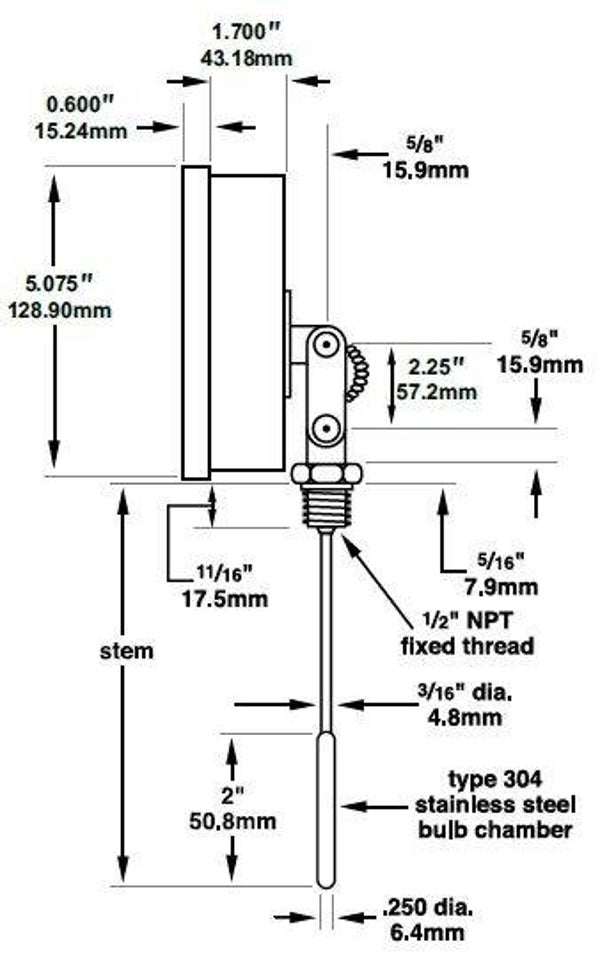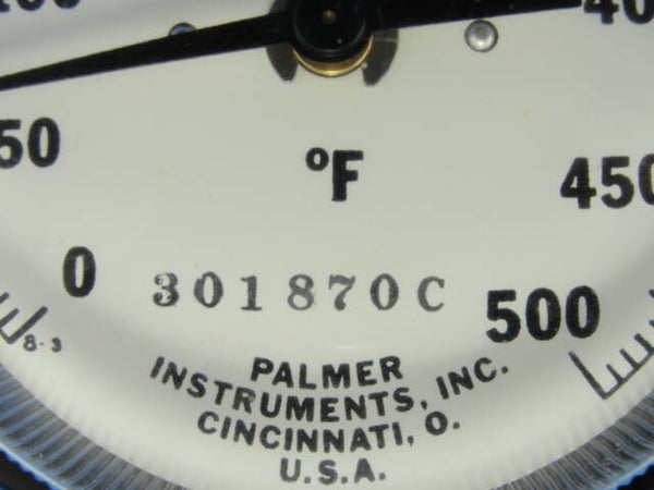 Palmer Instrument 1050 Temperature Gauge, 0-500 Deg F, ½ NPT, Any Angle Case