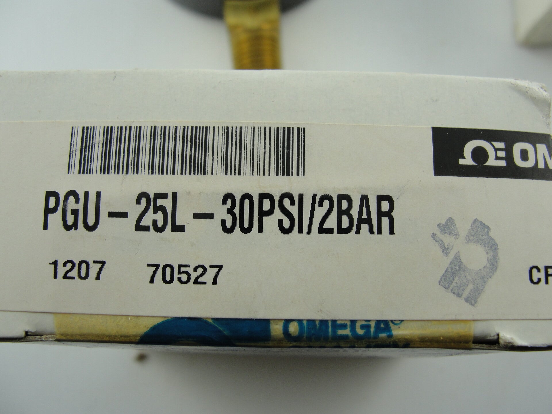 Lot of 3, Omega PGU-25L-30PSI/2BAR, Pressure gauge 0-30PSI, 2.5” face, ¼” lower mount