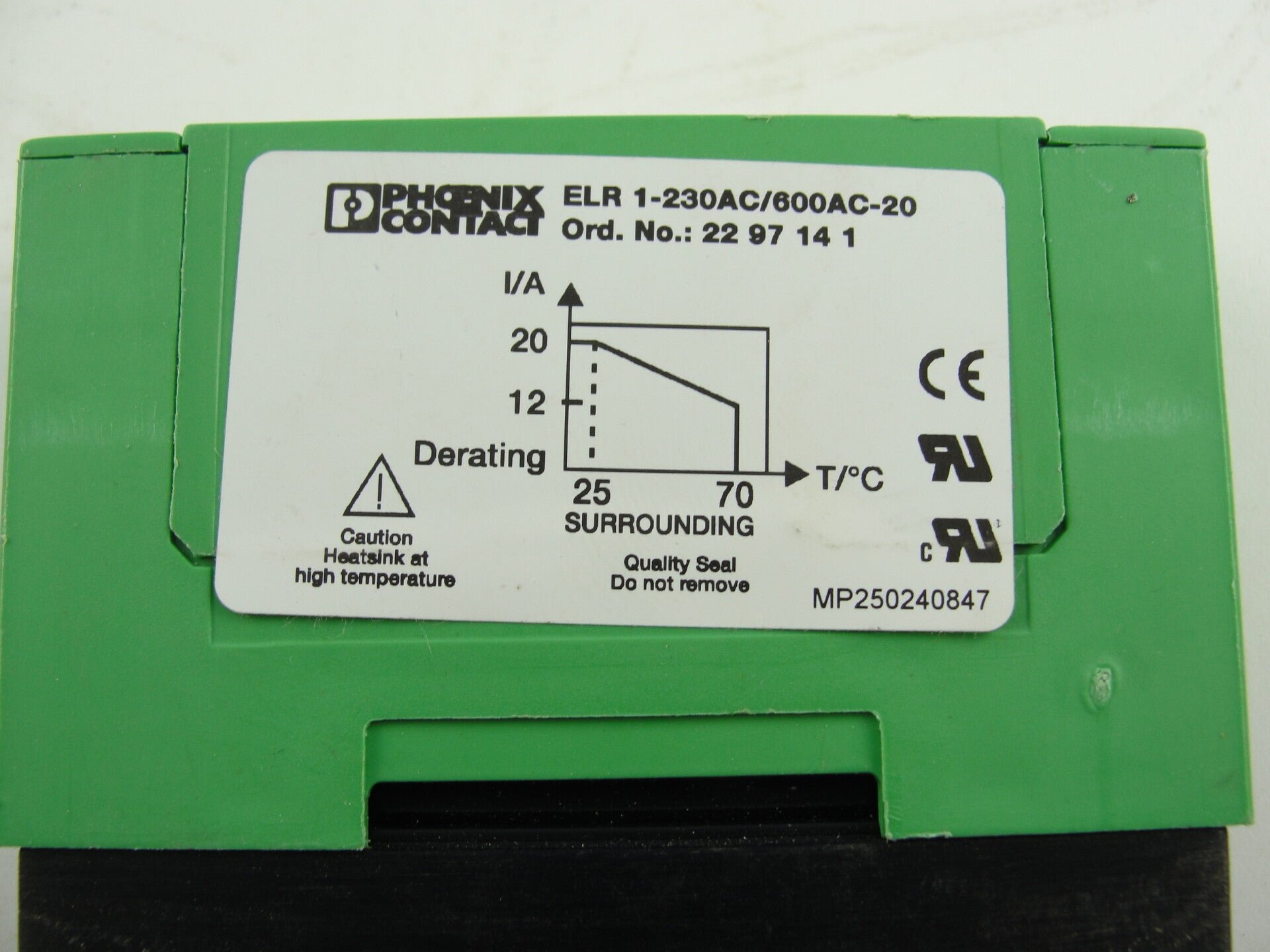 Lot of 4 Contactor Solid State 1-pole, Phoenix Contact ELR 1-230AC/600AC-20 (22 97 14 1) 20Amp SSR