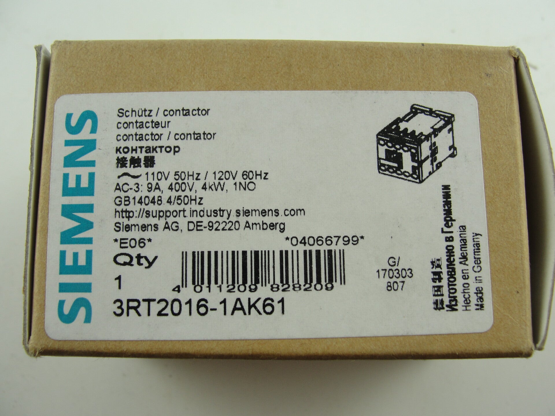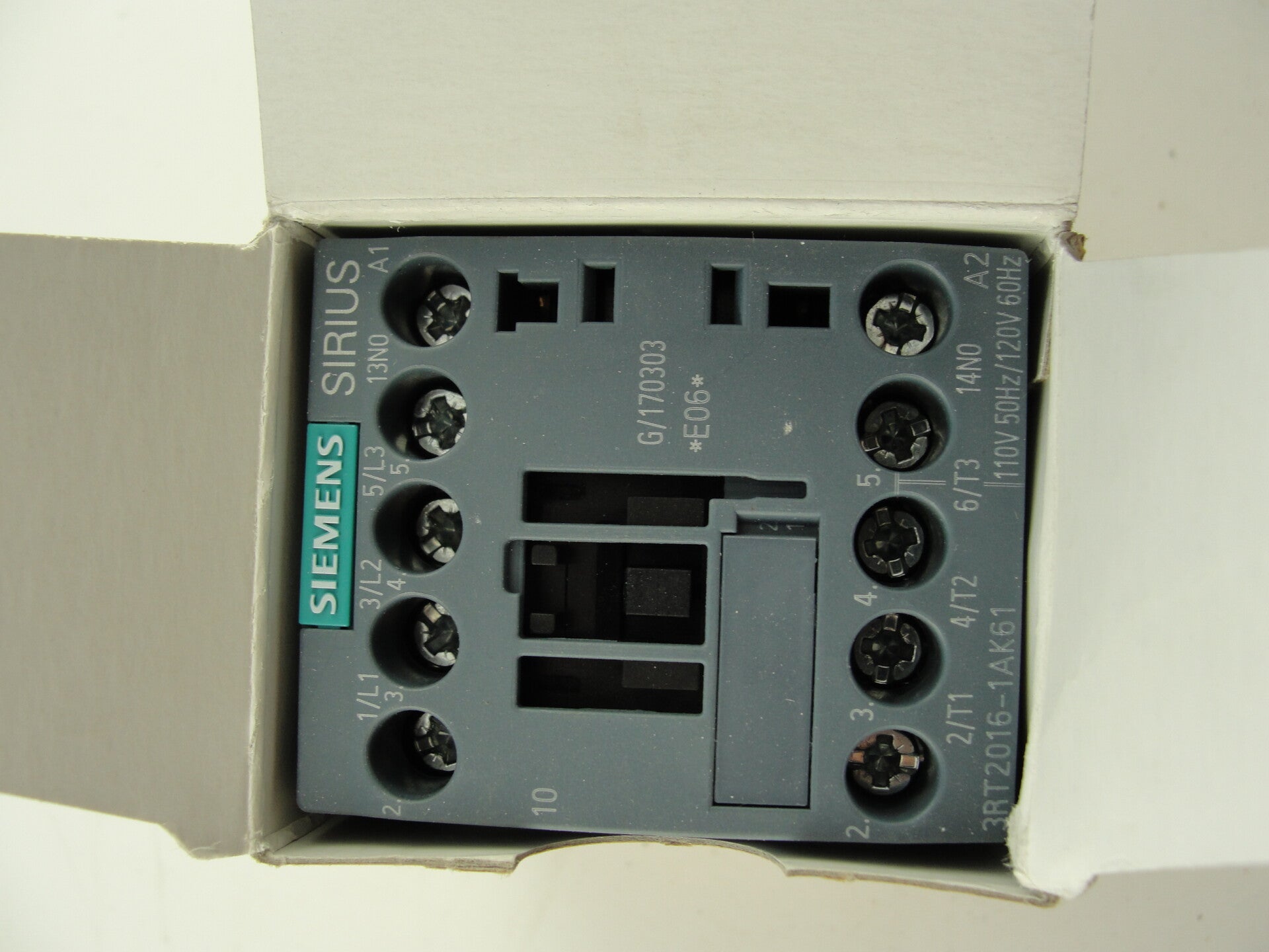 Siemens Power Contactor 3RT2016-1AK61, 9Amp, 3 pole, 110/120VAC, 50/60Hz